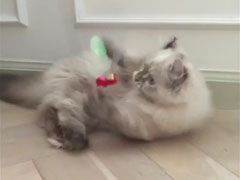 ゲームをベースに描かれたという、3話構成の新たな物語。主人公・キリト役の松岡禎丞(よしつぐ)さんをはじめとする本編の声優陣が、猫に声をあてているショートムービーです。第1話「みえみえだっ!」では、キリト声の猫がおもちゃと格闘。かけ声やSEこそ勇ましいものの、猫がじゃれついているようにしか見えず、謎の笑いを誘います。