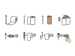 スタンプの種類は8種類。トイレットペーパーが切れてしまった時の気持ちを表す「補充して」と「罠だ!」、新しいトイレットペーパーをセットしたときの「準備完了」、トイレットペーパーのストックが3つ並んだ「余裕」など、トイレットペーパー残量に関する気持ちを表現したスタンプとなっています。