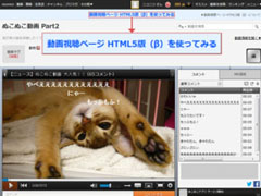 対象ユーザーの場合、Flash版動画視聴ページの上部に表示されるリンク「動画視聴ページ HTML5版(β)を使ってみる」から利用可能。なお、一部のFlashでしか再生できない動画は、自動的にFlash版ページで表示されます。