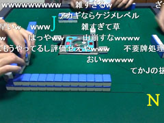 対局は俗に「サンマ」と呼ばれる3人麻雀。参加したR、N、Jの3選手は、いずれもイカサマの素人で、手口はスローで見なくともすぐ分かるレベル。当然、視聴者からはツッコミのコメントが殺到しているのですが、選手たちは互いに指摘することもなく、平然と打ち続けているところがシュールです。