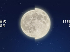 今年(2016年)4月22日に見られた最も小さかった満月と比較すると、あす(14日:月曜日)の満月は見かけの大きさが直径で約14%、面積で約30%も大きくなるようです。