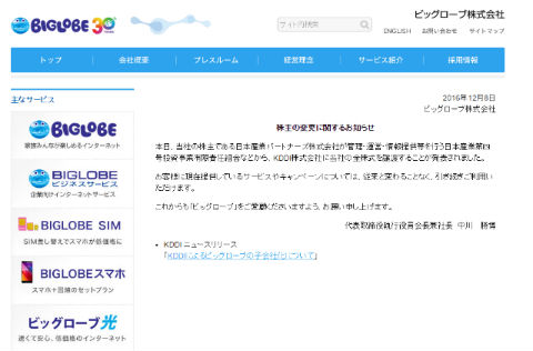 ビッグローブはNECの子会社でしたが、2014年に投資ファンド・日本産業パートナーズが買収していました。
