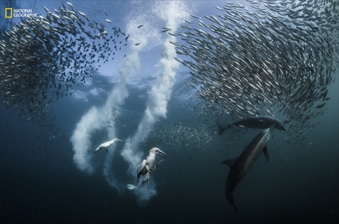 グランプリ・アクション部門1位「Sardine Run」Greg Lecoeur/2016 National Geographic Nature Photographer of the Year