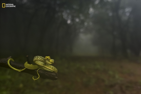 動物ポートレート部門1位「Dragging you deep into the woods!」Varun Aditya/2016 National Geographic Nature Photographer of the Year