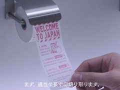 なお、PVでは外国人に向けて、和式トイレでのお尻のふきかたや、シャワートイレ使用時のテクニックも紹介。前からふく方式に「エレファントスタイル」、お尻を水流へ合わせにいく所作に「トルネード型」「相撲型」などと、日本人も知らないような命名をしています。内容自体はうなずけるのですが、日本の奇習として世界へ広まりそうで、ちょっと心配。