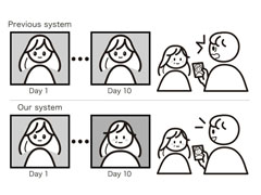 従来のシステム(上)と、Diverse技術研究所が研究・開発したシステム(下)のイメージ。出会った相手がプロフィール写真と全然違った場合は悪印象になりうるが、少しずつ時間をかけて現実の姿を認識してから会えば、ギャップが緩和されて円滑な交流ができると見込まれる