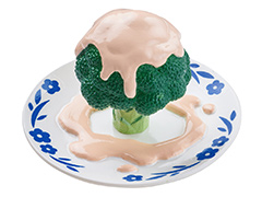 ゆでたブロッコリー1本を皿に立てるという前代未聞の盛り付け方法から、ネット上で話題になった平野レミさんの料理「まるごとブロッコリーのたらこソース」がカプセルトイとして商品化されることが発表されました