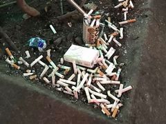 ネットの写真ほどではないが、植え込みには吸い殻がたまっていた