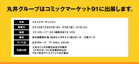丸井グループが12月29〜31日開催のコミックマーケット91(東京・有明)に出展します。3回目となる出展で、「シン・ゴジラ」「ユーリ!!! on ICE」「初音ミク」のグッズを展開。