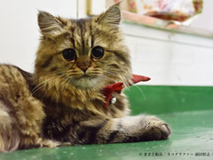 カンパチちゃんのチャームポイントは、丸い目とフカフカの毛並み。写真集では、カンパチちゃんのかわいさを存分に堪能できます。撮影後は大好きなおやつをもらったカンパチちゃん。モデルのお仕事おつかれさまでした!