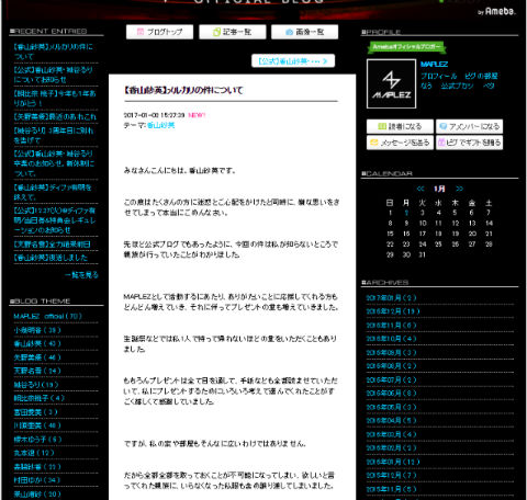広島のアイドルグループMAPLEZのメンバーが、ファンからのプレゼントをフリマアプリに出品しているのではないかと指摘されていた件について、所属事務所が1月2日「本人が知らないところで親族が行ったもの」とコメントしました。
