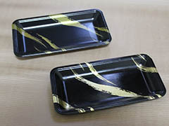 ちなみに上のトレーがスーパーのもので、下の方が本漆で塗ったお皿でした。漆はもちろんのこと、金色のカスレ具合も素晴らしい再現度ですね。
