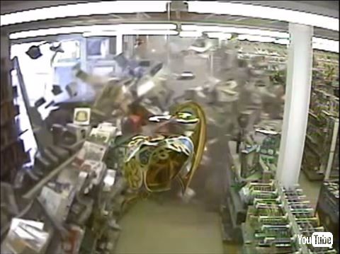 コミック店に車が突っ込む 事故の瞬間の衝撃映像が公開される
