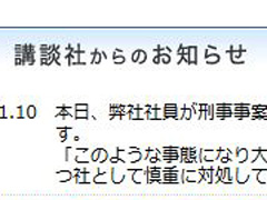 このような事態になり大変遺憾です。本人は無実を主張しており、捜査の推移を見守りつつ社として慎重に対処してまいります(講談社広報室)