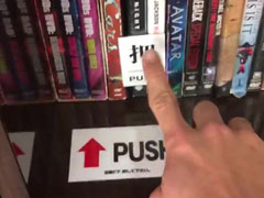たーむらさんがお店でトイレを見つけられずに店員に聞くと、「目の前にありますよ」との返事。しかしそこには映画の関連グッズが並ぶ棚があるだけで、混乱してしまったものの、DVDケースの並びに「押」と書いたプレートを発見。押してみると棚が横にズレて……隠しトイレ出てきたーっ!