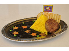カフェゼノンの全コラボメニュー。ライスが聖帝十字陵をかたどっている、「聖帝カレーRenovation」が目玉