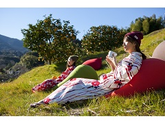 Yogihoのソファはポップなカラーと大きなサイズで包み込まれるような座り心地になっていることから、「人をダメにするソファ」と大人気。このYogihoのほか湯河原温泉の源泉を直接館内に引き込みかけ流しで提供します。また、食べ物に関しても日本全国の生産者と連携して厳選した食材を用意するなど、人をダメにする準備は万端のようです。本当に行きたい。