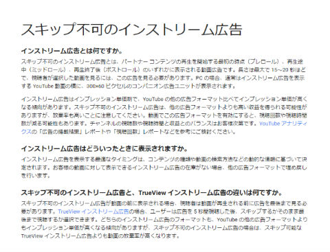 スキップできない広告の説明(サポートページより)