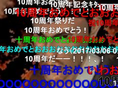 再生数は1600万回以上を達成し、コメント数も400万を超えている今なお人気の動画で、前日から10周年を祝うコメントによってアツい弾幕が作られています。