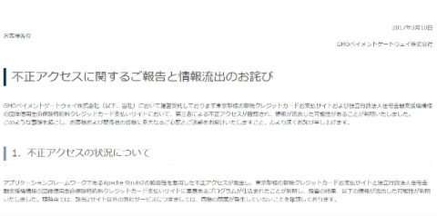 GMOペイメントゲートウェイは、同社が受託運営している東京都の都税クレジットカード支払サイトなどで不正アクセスが確認されたと明らかにし、謝罪した。70万件を超える個人情報が流出した可能性があるとしている。