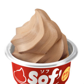 カップにやわらかい食感のソフトクリーム形状のアイスが入っており、味は「バニラ」と「チョコ」の2種。表面がつやっとなるまで時間を置いてから食べると、ショップでソフトクリームを食べているようなやわらかい食感が味わえるとのこと。