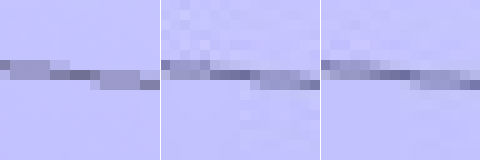 空を背景にした電線の画像。左が圧縮していないオリジナル、真ん中がlibjpeg、右がGuetzli