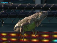 毎年3月開催の国際テニス大会、マイアミ・オープンの試合中にイグアナが乱入。コート内を逃げ回り、試合を数分間中断させました。珍事のもようは、ATPワールドツアーが公式YouTubeチャンネルで公開しています。