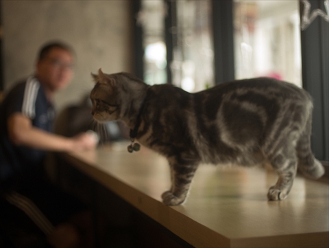 カフェとしてもお値段はお手ごろで、アイスカフェラテは1杯45バーツと日本円で150円くらい。バンコクでは外国人向けのカフェは値段が高く、スターバックスなどではアイスコーヒ一杯120バーツ(400円)くらいしますからコスパは高い。触れ合いをするのに追加料金がかからないのもうれしいですね。