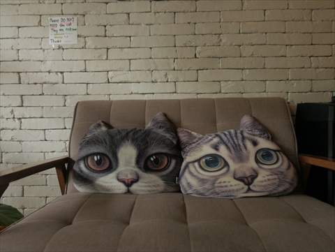 さて、お迎えしてくれるのは2匹の猫たち。しましま模様のサマーくんは1歳のアメリカンカール。白黒の模様のパンダくんは、立ち耳ですがスコティッシュフォールド。あまり奇麗とは言えない雑種猫を多く見る東南アジアで、ステキな毛並みを持つ猫たちです。