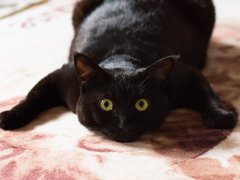 体を広げて堪能する黒猫さま。ガチな表情もかわいいです