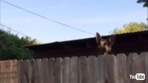 ジャーマンシェパードのペニーは、塀の向こうからピョンピョンとジャンプしてお隣の庭をのぞくのが大好き。毎日一生懸命ジャンプしては、お隣の様子をうかがっていました。