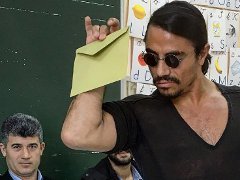 高所から票をファサー 塩をファサーするトルコのシェフ、投票もファサースタイルで臨む