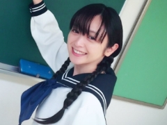 昔ながらのセーラー服におさげ髪という古風な王道スタイルで、黒板消し片手に天使のほほ笑みを浮かべる安達さん。真っ白な肌とキラキラした笑顔が秒速がハートを撃ち抜いてきますが、どうしても35歳には見えない若さとキュートさを誇っており、もはや“現役感を超えた何か”を感じさせます。なんだこれ、かわいすぎる……。