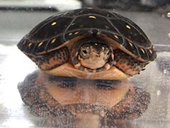 「たぶん、自分がすごく疲れてるんだと思う…この亀2匹写ってる写真がどーしても、インド風のおじさん2人がガラスの向からのぞき込んでるようにしか見えない」とTwitterにギボシイシガメ2匹の姿を投稿したのは、ちゃま✩爬虫類(@chamao_zoo3)さん。