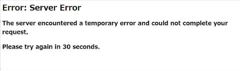 エラー画面が表示される状態に
