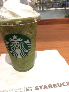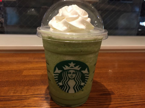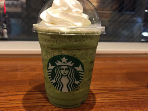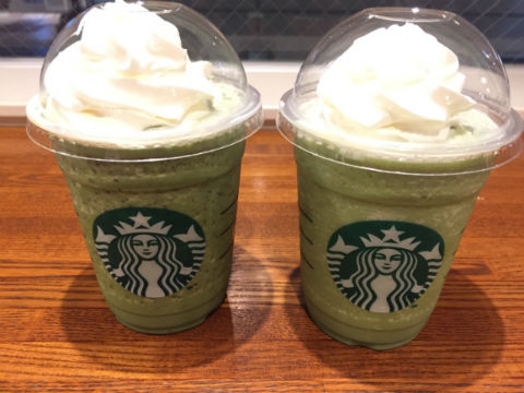 レシピを見るとなんだか割と普通の味っぽい気がしますが、そんなにうまいものなら飲んでみたい。そこでさっそく近所のスターバックスに向かいました。ベースになる抹茶クリームフラペチーノも飲んでみて味の違いを比べてみることにしました。