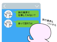 甲さんは、SNSで知り合いから「旅行を仕事にしませんか?」「会って話しましょう」というメッセージが来たので、喫茶店で会うことにしました。
