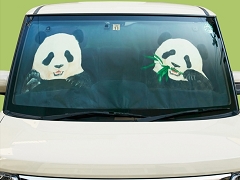 フロントガラスでパンダがおしゃべり 駐車場の目印にもなるかわいいサンシェードが登場