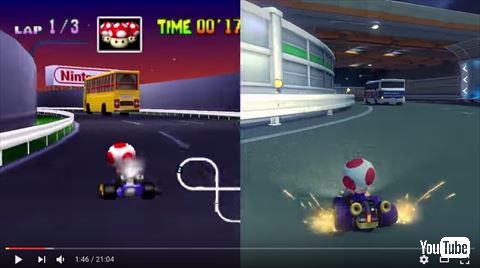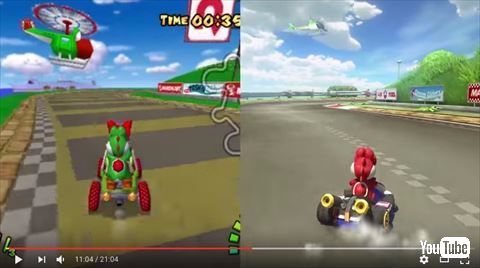 映像では、それぞれ40秒ほどで全23コースの比較がまとめられています。歴代シリーズを遊んでいるファンも、マリオカート8から遊び始めたファンも比較してみることで新たな発見があるかもしれませんよ。