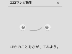 動画の検索もできるようになっているのですが、こちらもかなり厳重にフィルタリングされているもよう。試しに「エロマンガ先生」(現在放送中の深夜アニメ)で検索してみると、「ほかのことをさがしてみよう」と笑顔で返されました。手厳しい。単純にNGワードに引っ掛かっただけかもしれませんが。