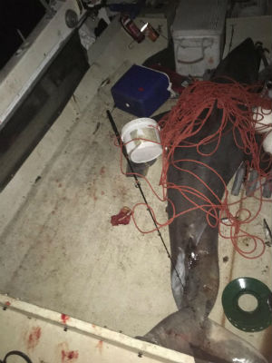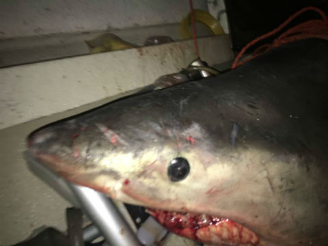 5.5メートルの大きさの船に2.7メートルのサメが。