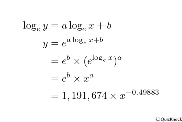 画像のような変形を経て、順位xと得票数yの関係を求めた。