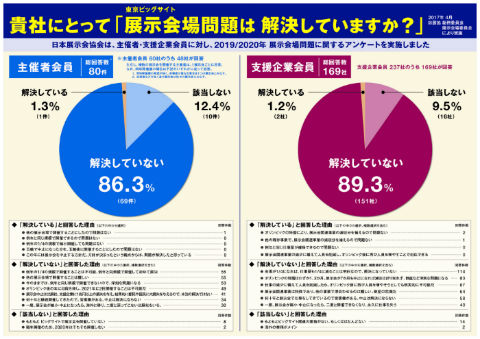 日本展示会協会が実施した「ビッグサイト問題は解決しているか」というアンケート結果(2019-2020会場問題サイトより)