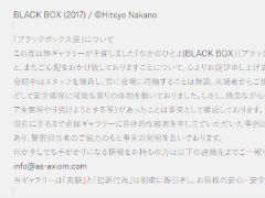 来場者が痴漢被害を受けたと訴え、物議を醸している「なかのひとよ|BLACK BOX」(ブラックボックス展)について、会場となったギャラリー「ART & SCIENCE gallery lab AXIOM」(東京・六本木)が謝罪文を掲載した。警察の協力のもと事実の究明を急いでいるとしている。