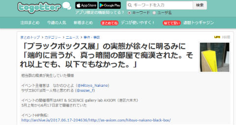 痴漢被害の報告で物議 「ブラックボックス展」のギャラリーが謝罪文