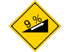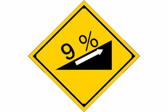 山道や急な坂道で見かけるこの標識、これは「道路の登り勾配(水平面に対する傾き)が9%」であることを意味しています。