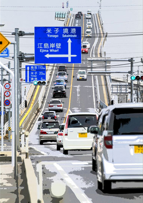 ちなみに自動車メーカーのCMでも有名な、ベタ踏み坂ともいわれる江島大橋(鳥取県―島根県)は、国土交通省によると、島根側6.1%、鳥取側5.1%。数値に起こすと3度から4度程度となり、意外にもそこまで急な感じはしませんよね。