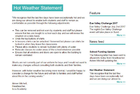 今週に入り気温が急激に上がって30度を超えたことから、ISCA Academyの生徒たちは長ズボンを短パンに替えられないかと教師に尋ねます。しかし返ってきた答えは、校則で認められないというもの。スカートをはきたければはいてもいいと教師が(おそらく冗談で)言ったことから、30人ほどの男子生徒がスカートをはいて登校。