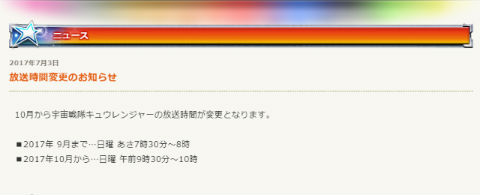 「宇宙戦隊キュウレンジャー」時間変更の発表