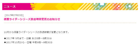 「仮面ライダー」時間変更の発表